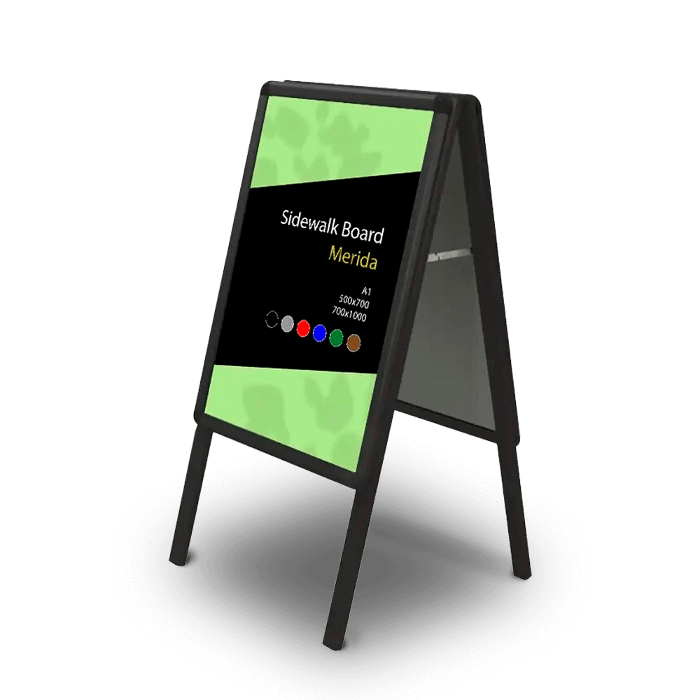 – Doble Lado – Impresión en Vinyl laminado pegado sobre madera – estructura tubular y de aluminio – medida 60 x 100 cm