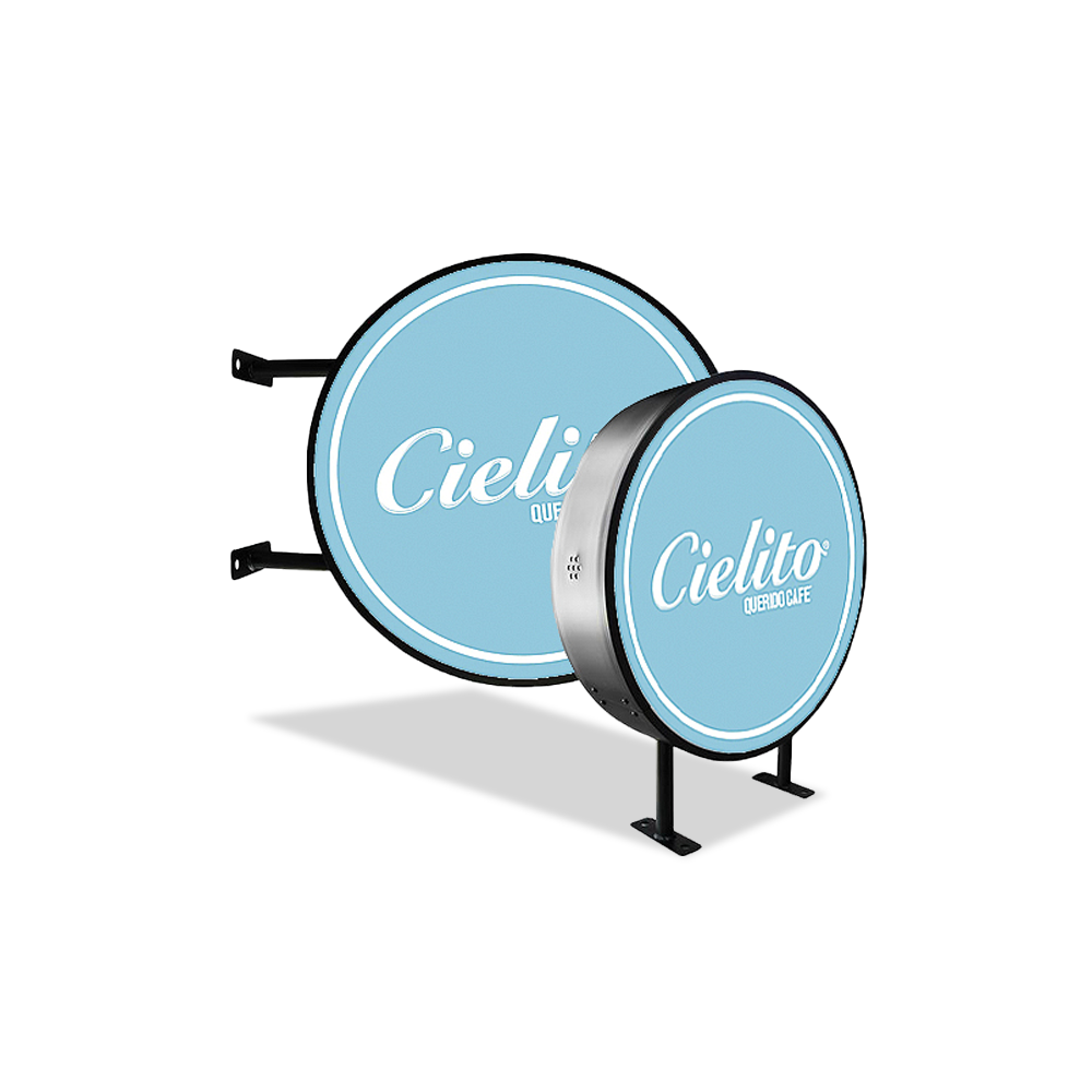 – Doble lado – 60 cm de diámetro – luz interna de 110 v – Acrílico con Vinyl