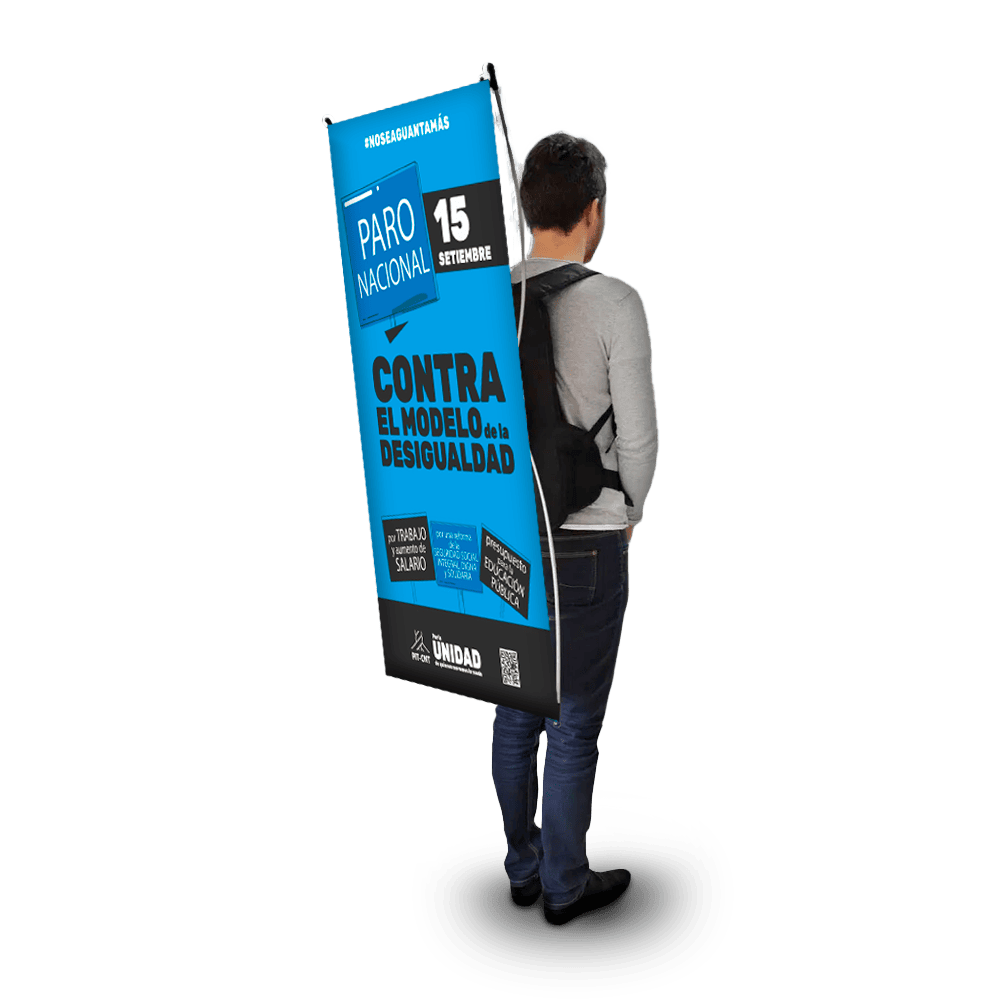 – Mochila con impresión posterior – Material pet banner fotográfico – Tela Sublimada a full color – Medida 112 x 48