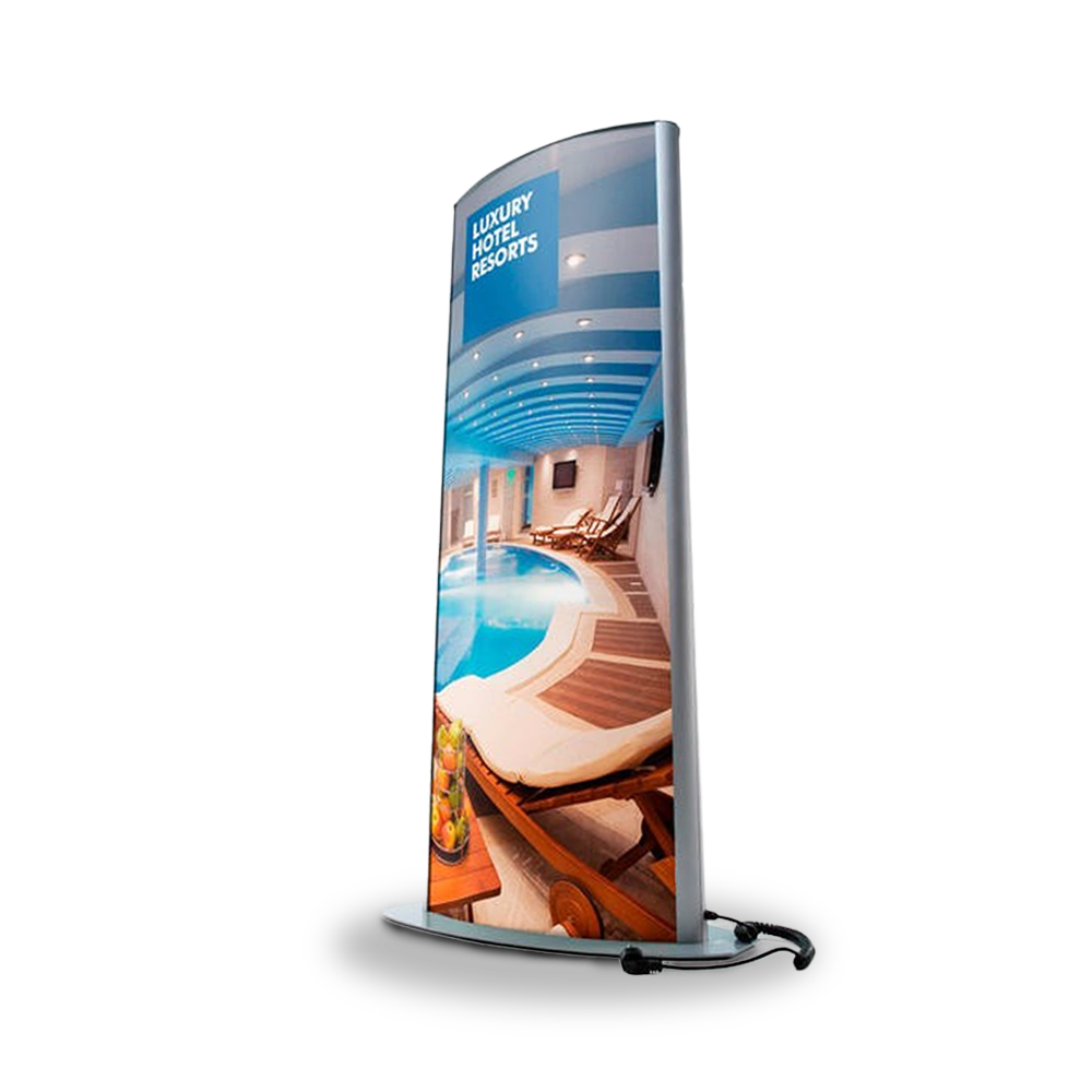 – Medida 40 x 152 – Impresión Backlit full color – Diseño curvo con carcasa de aluminio – iluminación led